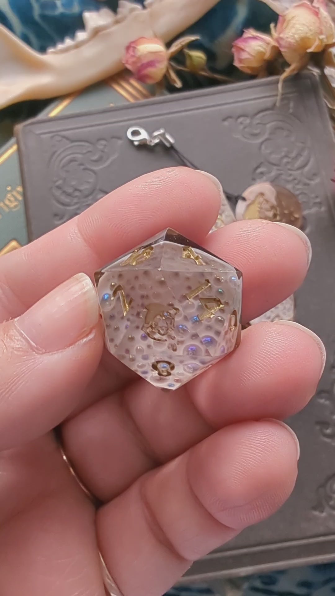 This is a set of handmade resin dice. While I strive to make them as perfect as possible, there may be small imperfections and marks from the handmade process that will not affect gameplay in any way.